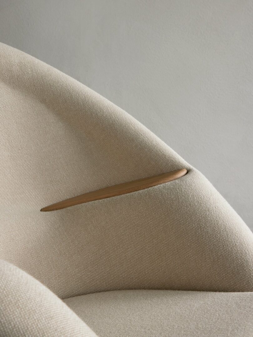 Выполненное в винтажном стиле, поскольку в нем нет оригинальных рисунков, кресло Oda демонстрирует высочайший уровень мастерства, который проявляется в замысловатости его обивки. Доступен с ножками из натурального дуба или ореха орех.