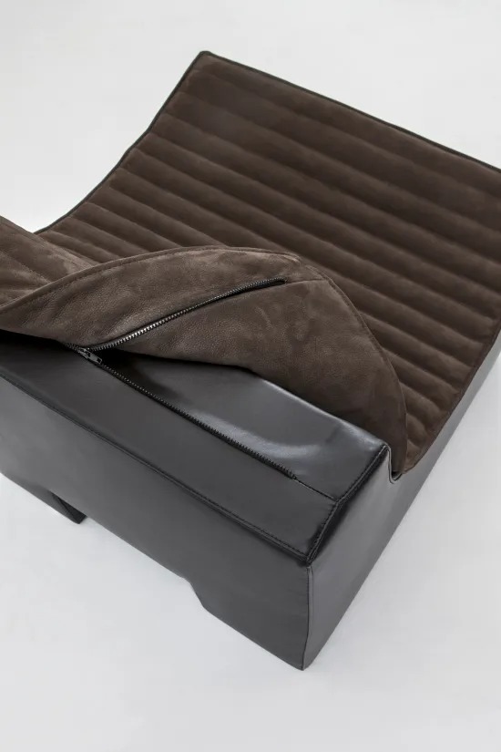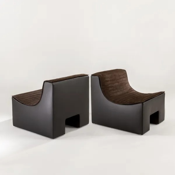 Полностью обитое мягкое кресло с отделкой из кожи, бархата или ткани.