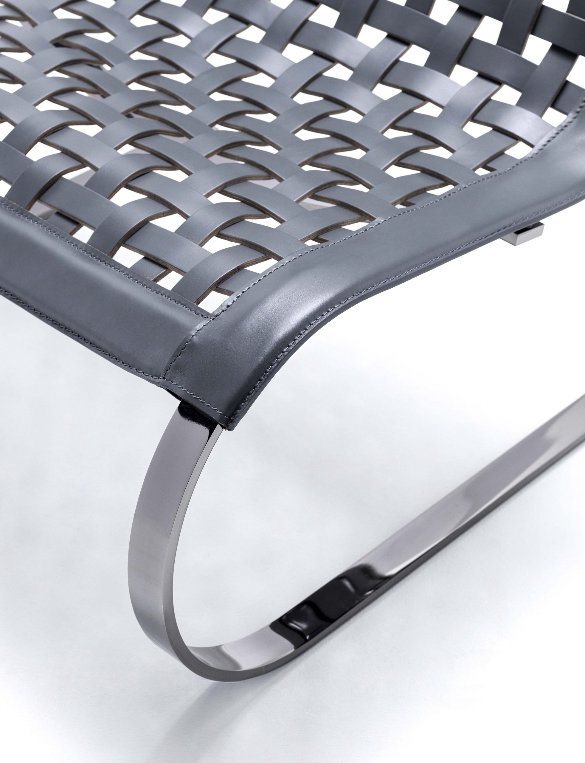 Кресло O’MIES — это шедевр итальянского дизайна, где плавные изгибы стального каркаса сочетаются с мягкими линиями спинки и сиденья. Его силуэт напоминает изящную скульптуру, созданную для восхищения. Рельефный крой переплетений не только добавляет визуальной глубины, но и подчеркивает премиальность натуральной кожи, используемой в отделке.
