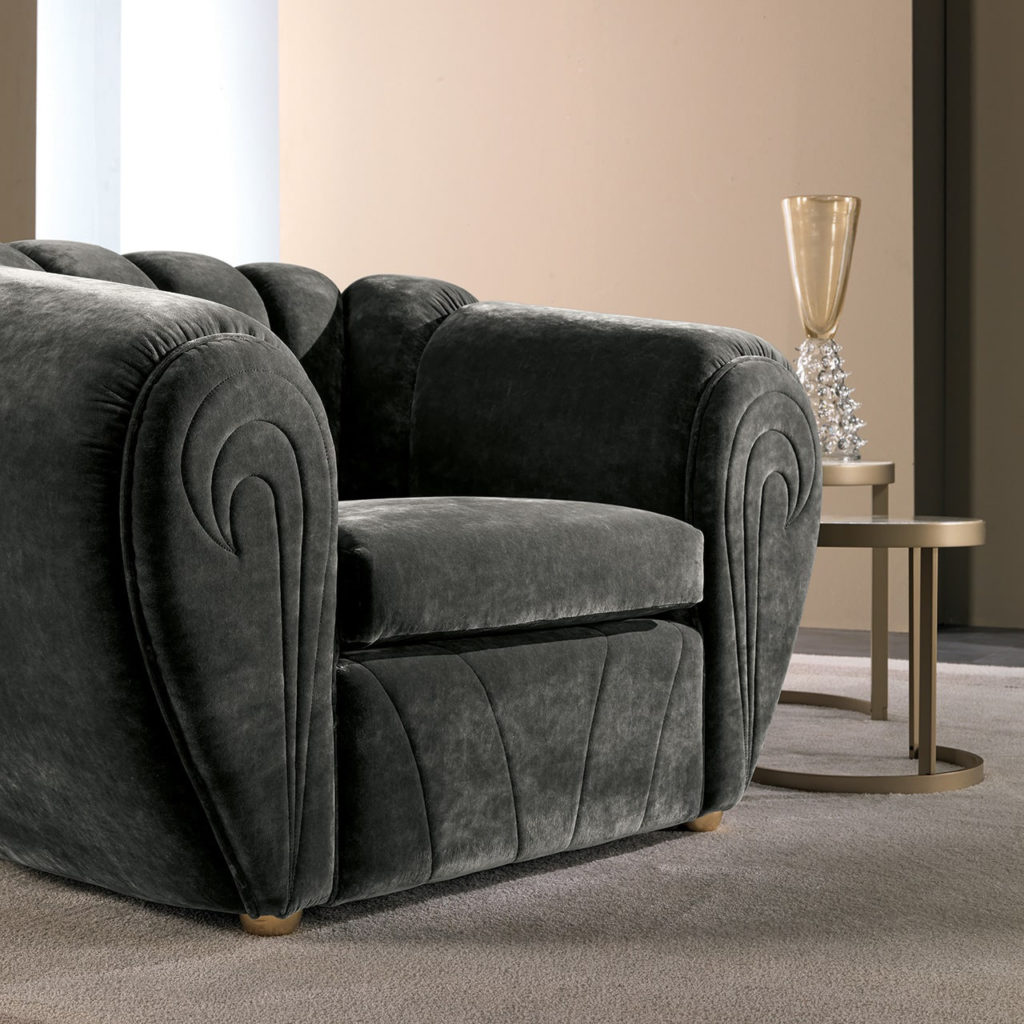 Элегантная гостиная в современном стиле, состоящая из трехместного дивана, двухместного дивана и кресла. Их мастерство в соответствии с традициями brianzola придает этим дополнениям уникальный и личный штрих, который делает их красоту вечной и классической навсегда.
