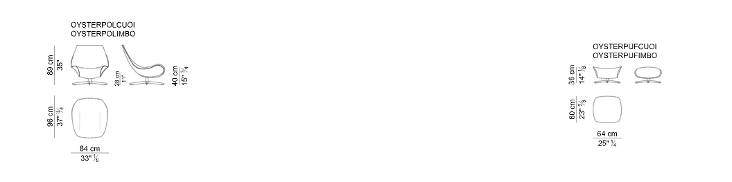 Кресло Oyster — это прочная, долговечная и защищающая оболочка, чувствительный интерьер, напряженный в разработке форм и в то же время мягкий на ощупь и окутывающий комфортом. Линии “мускулов” задней части раковины и грани по бокам делают корпус Oyster динамичным и динамично реагирующим, что является абсолютной эксклюзивностью дизайна. Совпадение боковых изгибов двух вогнутых и выпуклых частей изделия подчеркивается с помощью застежек-молний, которые отделаны широкими краями швов.