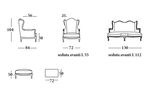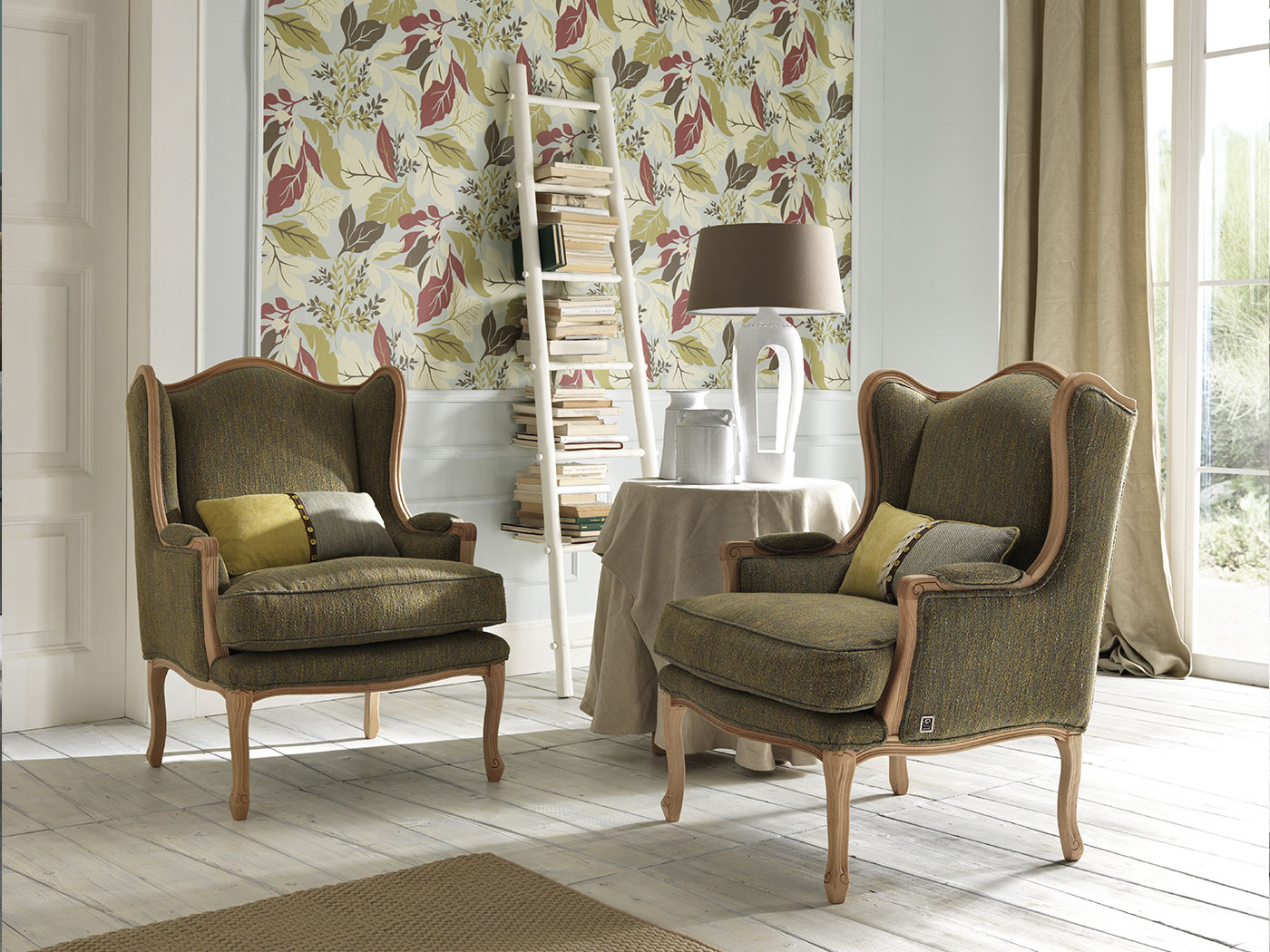 Варианты: кресло, 2-местный диван и пуфик. Структура: дерево и его производные, высокопрочные перекрестные эластичные ремни. Набивка: пенополиуретан с различными размерами и качеством, полиэфирные волокна. По запросу вы можете настроить прокладки. Особенности: отделка деревянной конструкции доступна в цветах, представленных в каталоге.