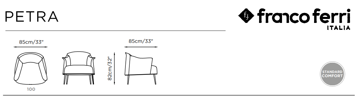 С плавными, обволакивающими линиями Петра выражает утонченную легкость. Изогнутая конструкция приветствует сдержанную элегантность, а тонкие металлические ножки придают импульс и современность.