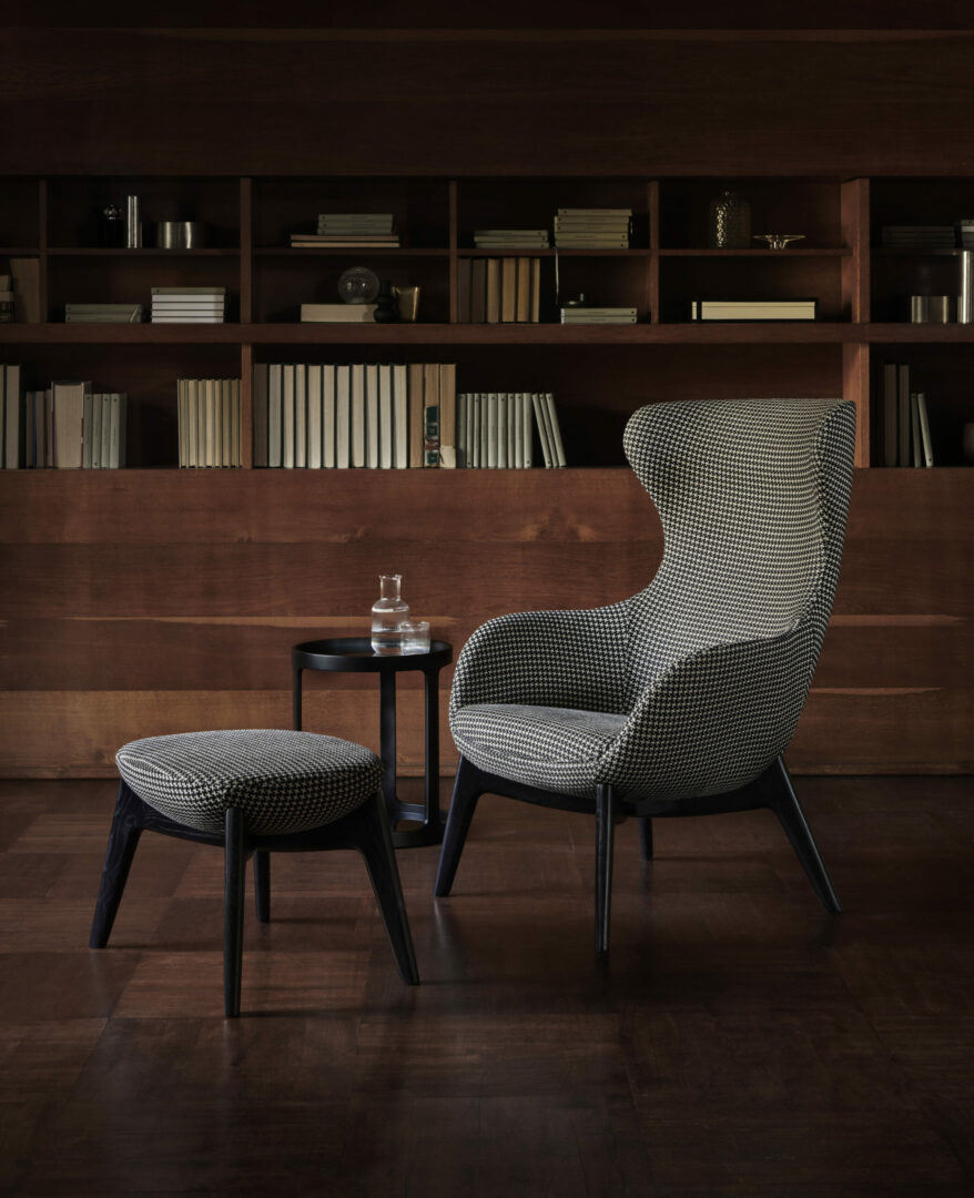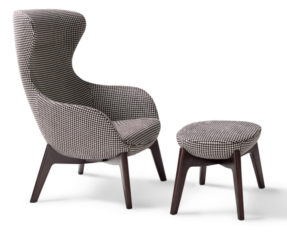 Кресло QUEEN отличается гармоничными и обволакивающими линиями, структурой из пенополиуретана высокой плотности и более чем 500 вариантами тканевой или кожаной обивки. Ножки выполнены из массива дерева, покрытого коричневым или черным лаком.