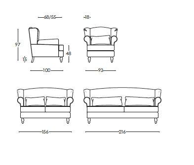 Версии: кресло, 2 места, 3 места. Структура: дерево и его производные, ремни высокопрочные перекрестные резинки. Обивка: пенополиуретан при дифференцированных квотах и качествах волокна полиэфир. Особенности: подшипники из нержавеющей стали перо в стандартной комплектации; открытые ножки в отделке доступны в каталоге.