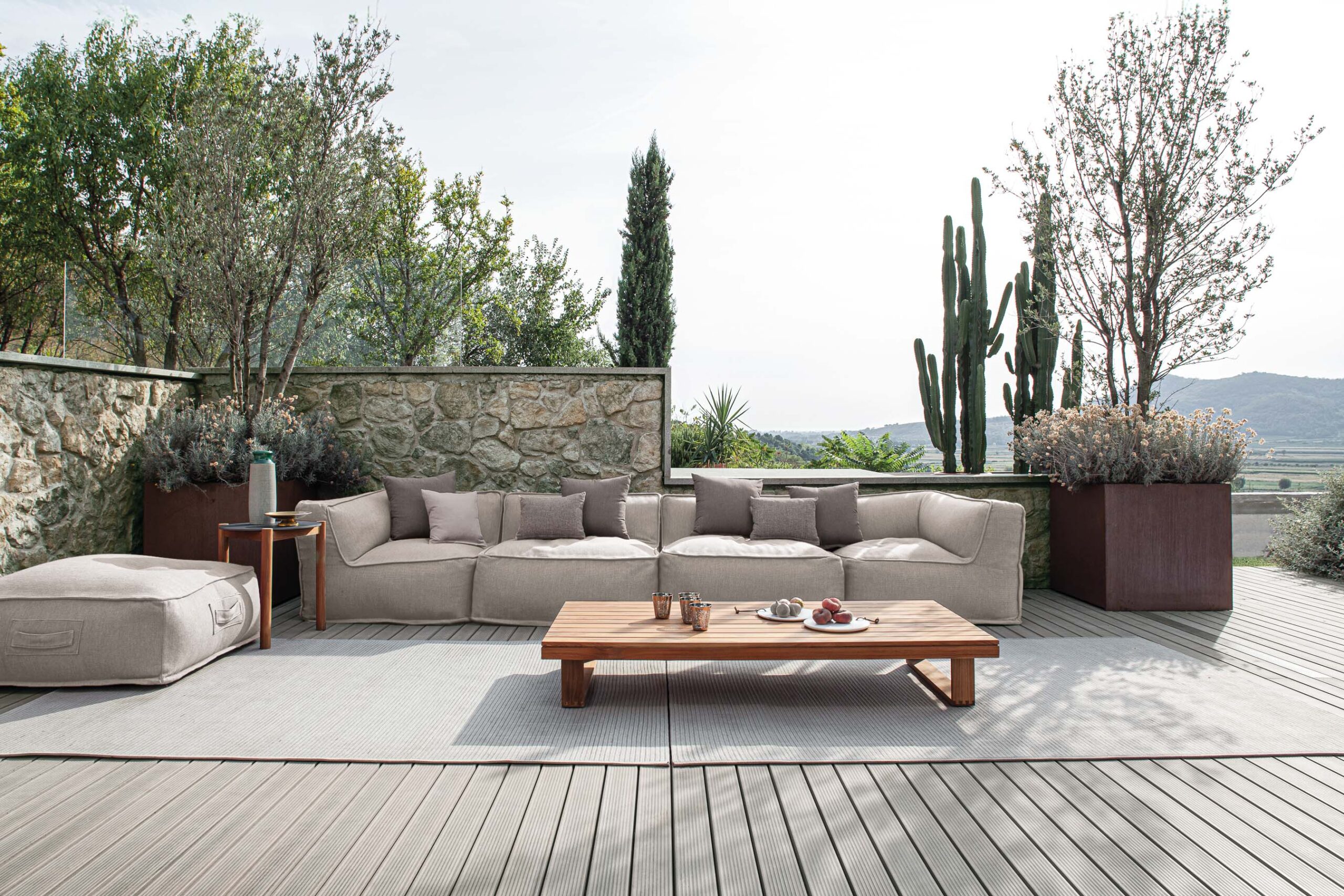 Модульный диван, состоящий из микросфер из полистирола, закрытых подкладкой из влагоотводящей ткани, что гарантирует быструю сушку и придает изделию мягкость и идеальную эргономичность.