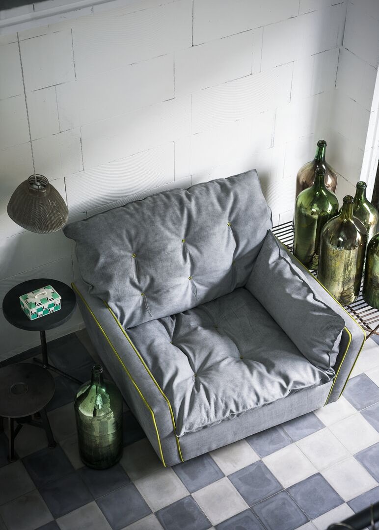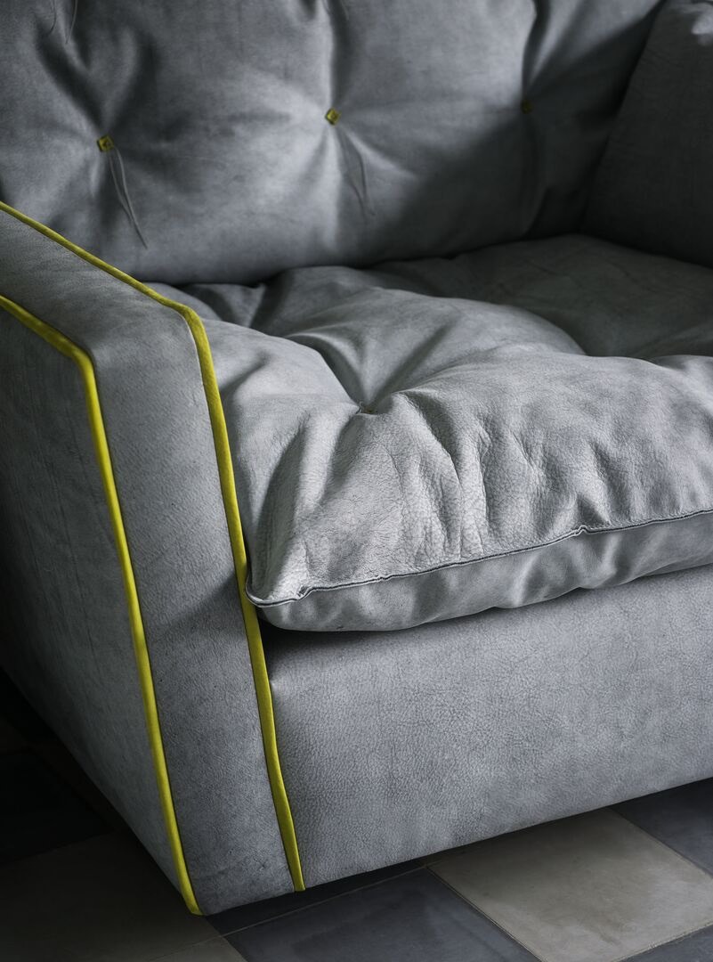 Паола Навоне разработала для компании Baxter коллекцию мебели Sorrento, включающую диван и кресло классических форм и крупных объемов, которые напоминают гнездо, колыбель, убежище. На массивном каркасе строгой формы с контрастными краями лежат мягкие подушки из гусиного пуха, объемные и легкие, как облака, в которых можно утонуть. Кожаная обивка располагает к наслаждению комфортом и отличается мелкими контрастными деталями, напоминающими прошивку матраса. Большое кресло и диван, созданные для полного расслабления, творят атмосферу отдыха и покоя и привносят ощущение безмятежности и уюта в любой интерьер.
