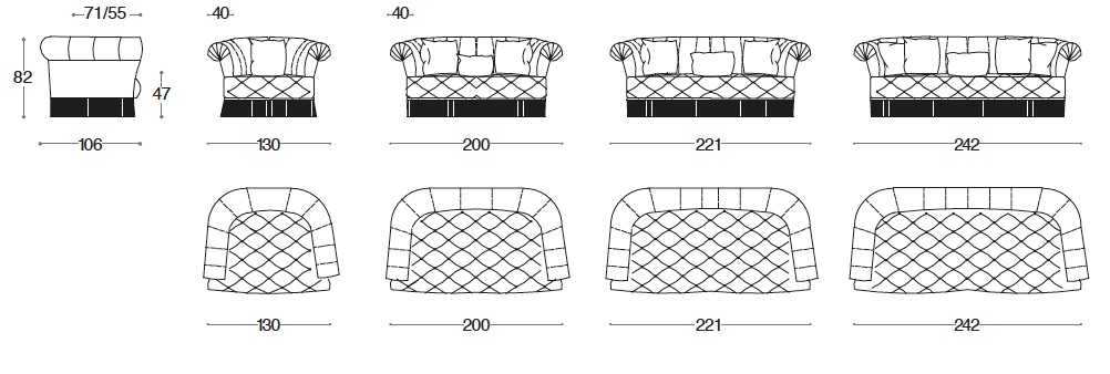 Кресло; диван в вариантах: 2-местный, 2,5-местный и 3-местный.