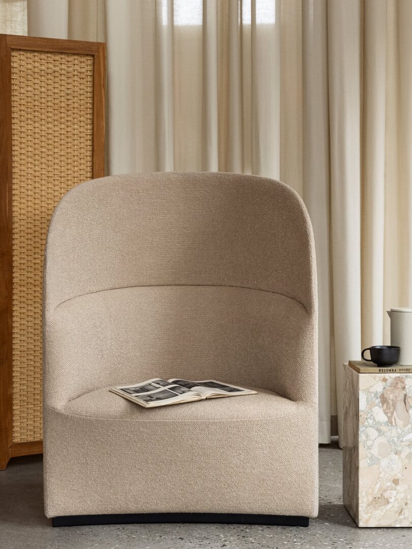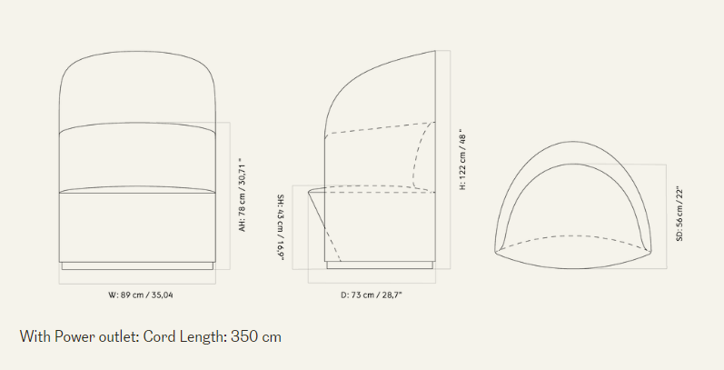 Мягко изогнутые линии кресла для отдыха в чайной с высокой спинкой дополняют силуэт его предшественника, создавая кресло, которое служит убежищем от внешнего мира. Скульптурный дизайн, дополняющий форму тела, демонстрирует потенциал простых геометрических форм. Роскошная обивка в сочетании с четким силуэтом кресла приятна на ощупь и приятна на глаз – широкое низкое сиденье делает его подходящим как для старинных, так и для современных помещений, от эксклюзивных отелей, клубов и залов отдыха до рабочих мест. Наличие порта USB-C и розетки питания в основании делает его удобным местом как для работы, так и для игр.