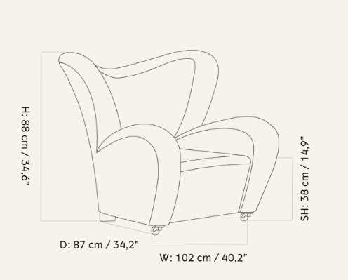 Предлагается с мягкой обивкой, в том числе из овчины, в соответствии с оригиналом, а также с ножками из натурального дерева или дуба, обработанного темным маслом, и передними латунными колесиками для удобства перемещения. Соответствующая подставка для ног обеспечивает дополнительный комфорт.