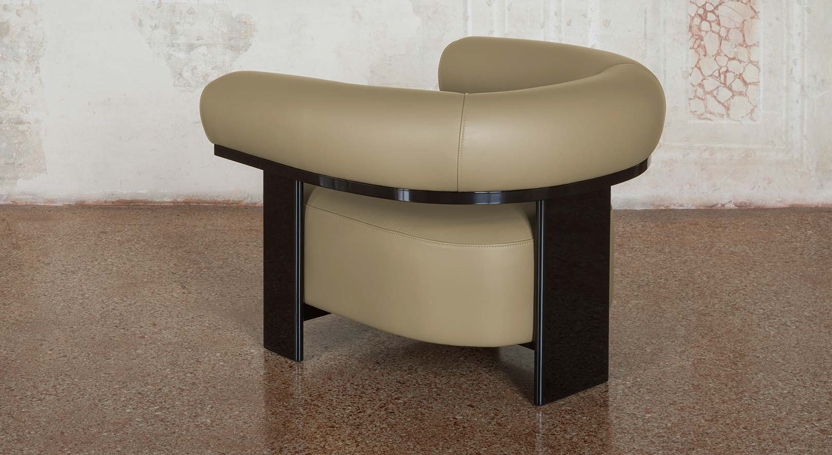 Простые линии и геометрический контур конструкции создают идеальную опору для округлой подушки сиденья. Спинка визуально напоминает круглую скобу, что создает приятную округлость гармоничных и сбалансированных пропорций.
