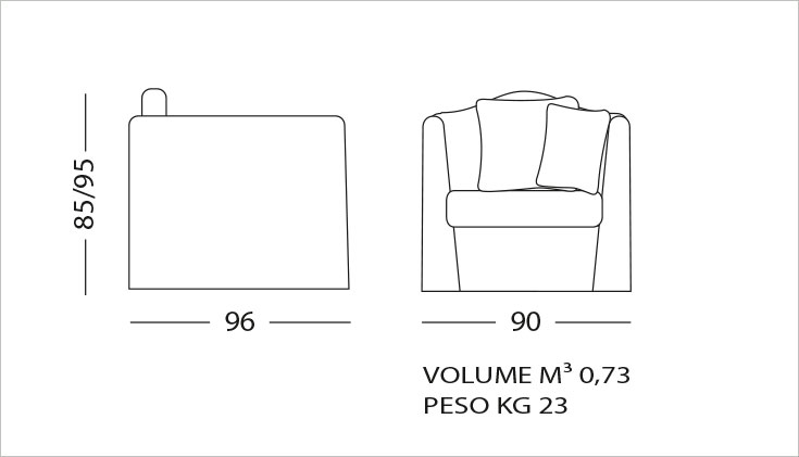 Варианты: кресло, диван 2 места, 2 с половиной места, 3 места, 3 с половиной места и пуфик кровать. 2-местный , 2-местный, 3-местный и 3-местный с половиной доступен в версии кровати с электросварной сеткой и матрасом из полиуретанового волокна h. 12 cm.