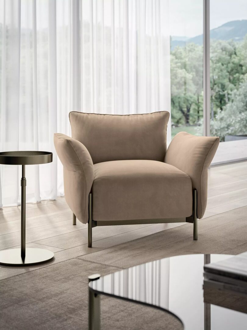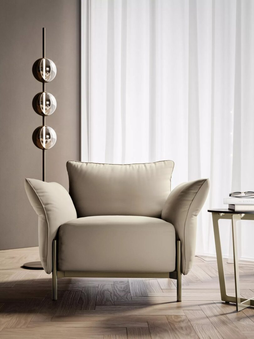 Кресло Victor продолжает утонченную элегантность одноименного дивана, предлагая дизайн, гармонично сочетающий легкость и изысканность. Его выразительный графичный силуэт отличается чистыми линиями и безупречным балансом между комфортом и минималистичной эстетикой. Дополнительные подлокотники, напоминающие изящные крылья, подчеркивают воздушный дизайн, сохраняя структурную гармонию. Благодаря точным пропорциям и лаконичной элегантности, кресло Victor становится центральным элементом любого интерьера, предлагая роскошный комфорт без ущерба для визуальной выразительности.