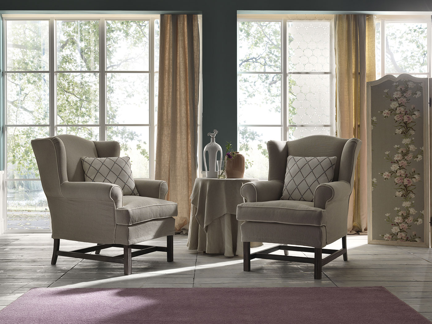Версии: кресло. Структура: дерево и его производные, высокопрочные перекрестные эластичные ремни. Набивка: пенополиуретан с различными размерами и качеством, полиэфирные волокна. По запросу вы можете настроить прокладки. Особенности: полностью съемный; отделка деревянной основы доступна в цветах, предусмотренных в каталоге; профили с окантовкой в стандартной комплектации.