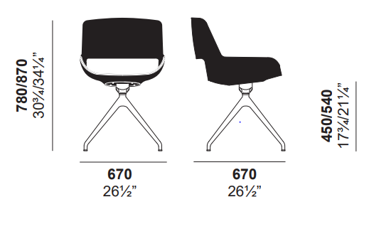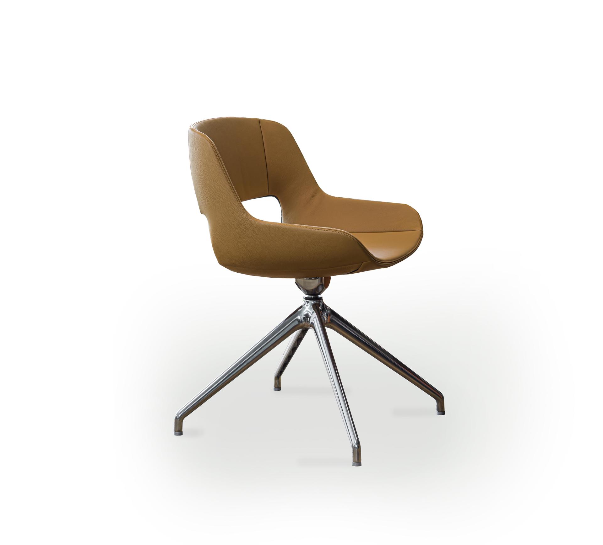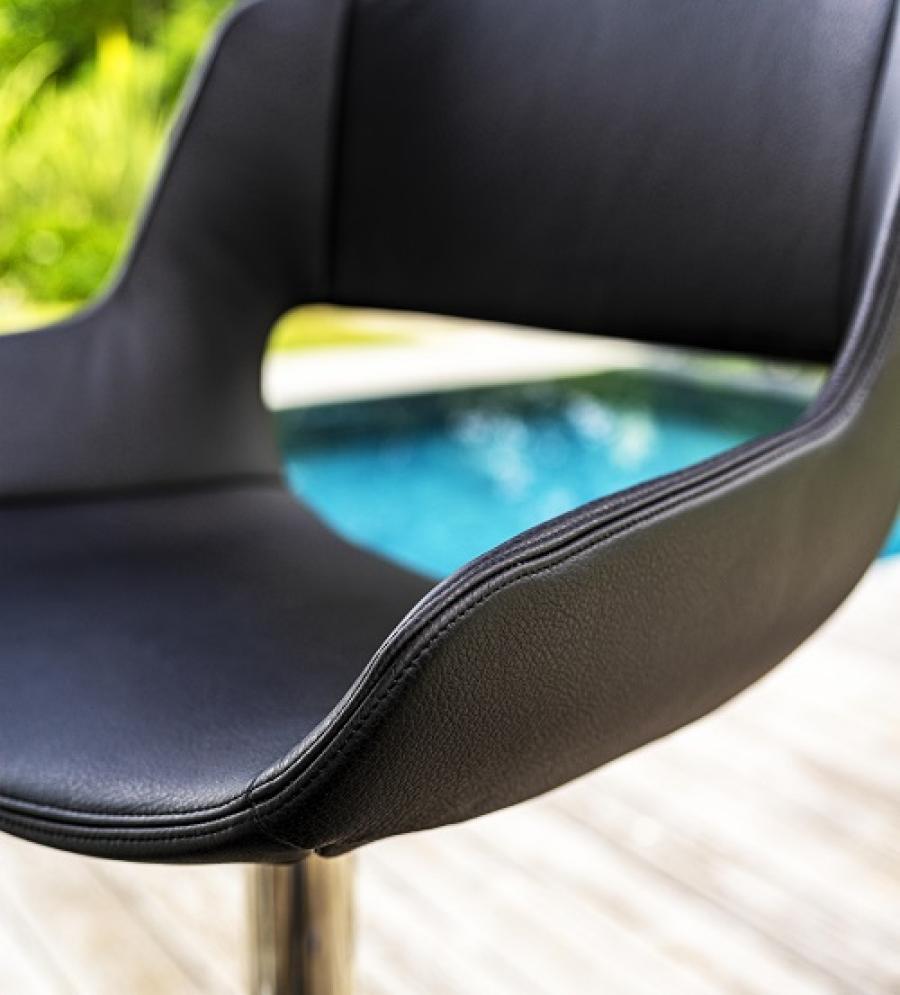 Сиденья с жесткой полиуретановой обшивкой. Обивка может быть выполнена из различных материалов. Основание на четырех спицах из яркого хрома.