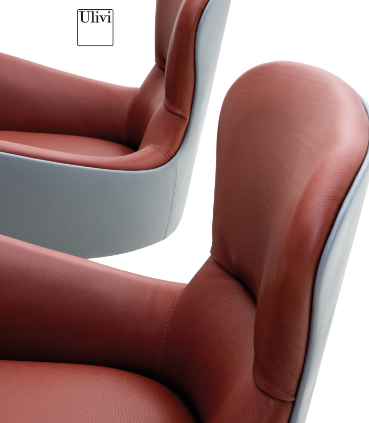 Внутренняя структура: Многослойная изогнутая древесина ели, двойная оболочка. Обивка подушек: Подушка для сидения и спинка: Пенополиуретан различной плотности. Обивка: Высококачественная кожа или ткани доступны в различных категориях. Благодаря двойному корпусу на каждом корпусе также можно использовать два разных типа кожи . Основание: Поворотный механизм из алюминия.