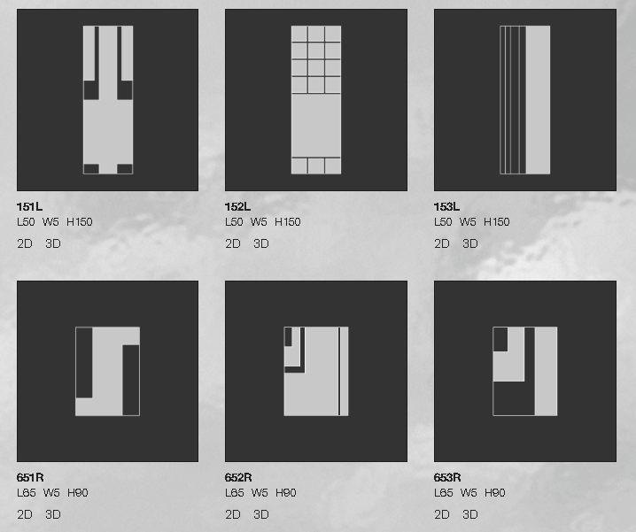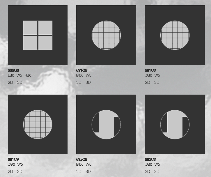 Повторный выпуск первой коллекции зеркал, разработанной Нандой Виго для Glas Italia, которая была впервые представлена в 1974 году. Это коллекция зеркал в негативном и позитивном исполнении (прозрачные части чередуются с зеркальными) различных форм и размеров, с нейтральной отделкой или из уникального стекла янтарного цвета. Подвесная система позволяет устанавливать зеркала под различными углами наклона.