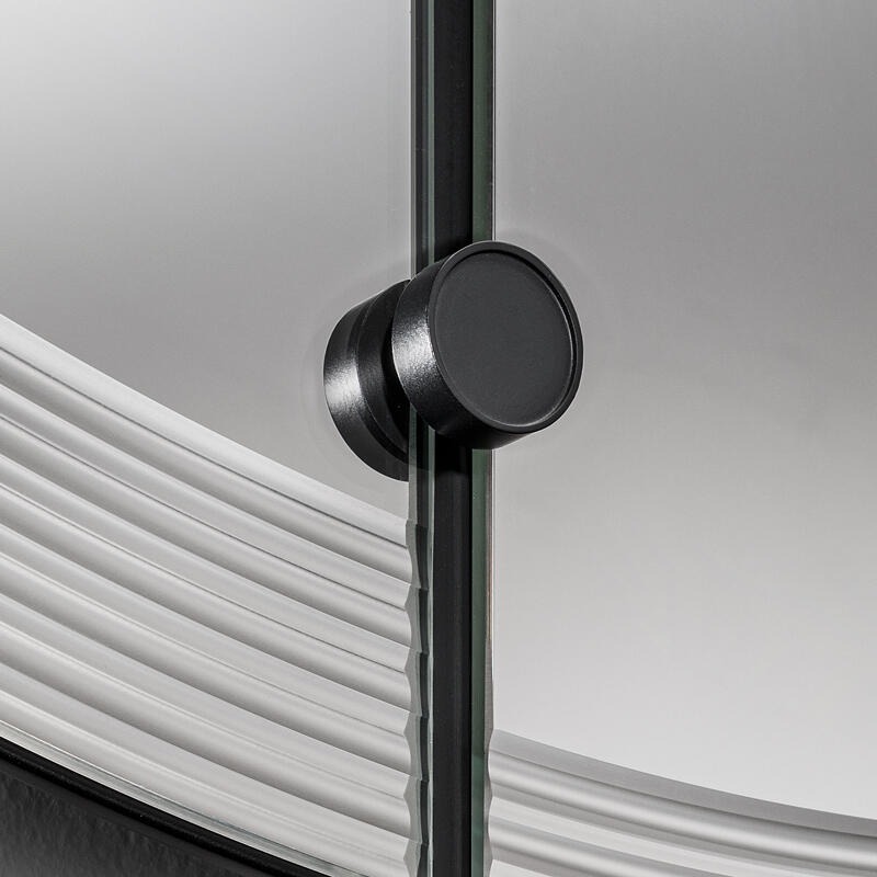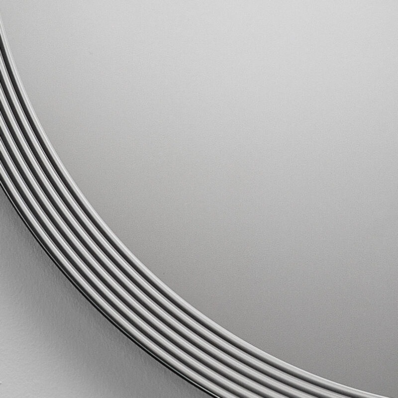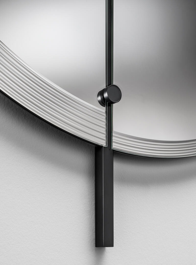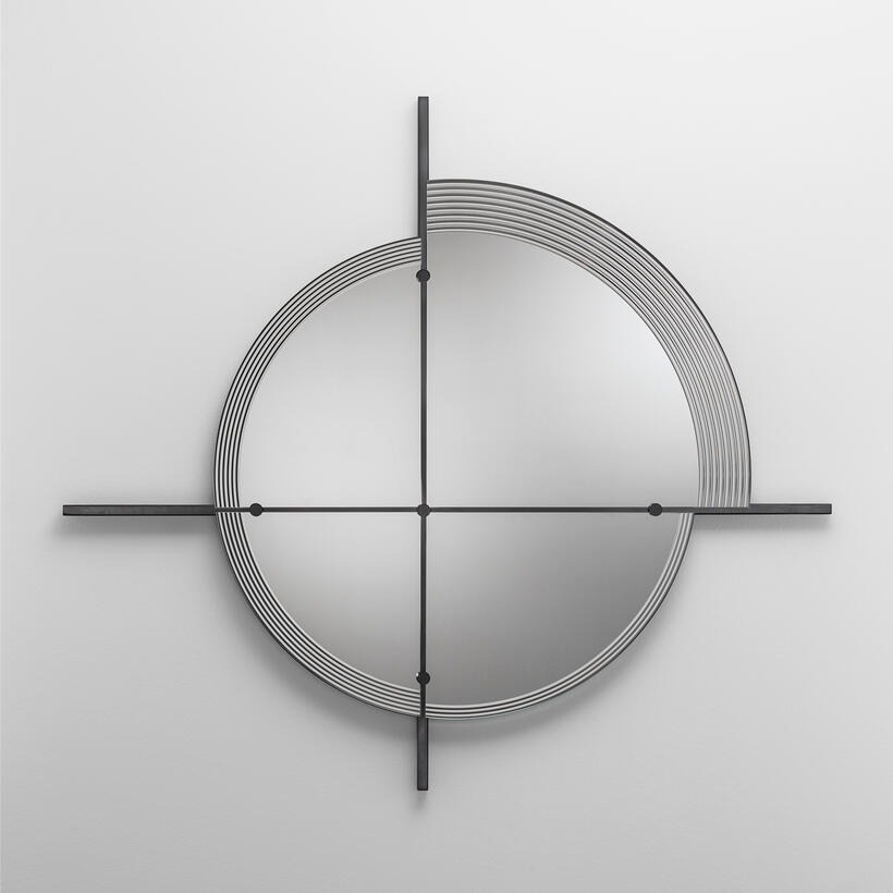 Круглое зеркало, разработанное Жан-Мишелем Вильмоттом. Квадратная металлическая конструкция, покрытая матовым черно-серым лаком.
