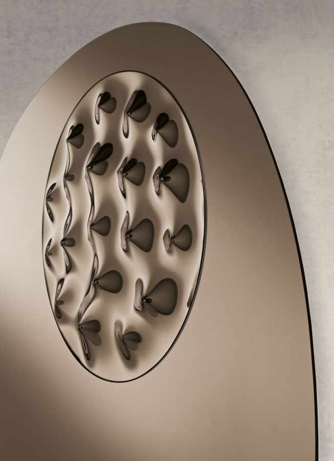 Зеркало Bijou воплощает в себе элегантность и современность. Его контурный дизайн с вставкой из изменчивого стекла создает эффект глубины и игры света, превращая обычное отражение в динамичное визуальное впечатление. Каждая линия тщательно продумана мастерами Capodarte, что делает это зеркало уникальным в своем роде.