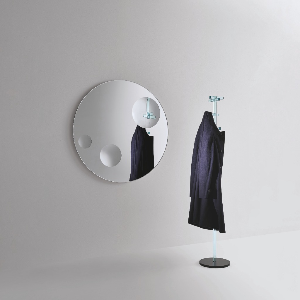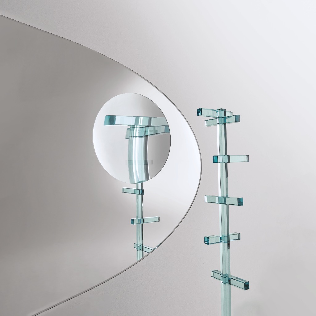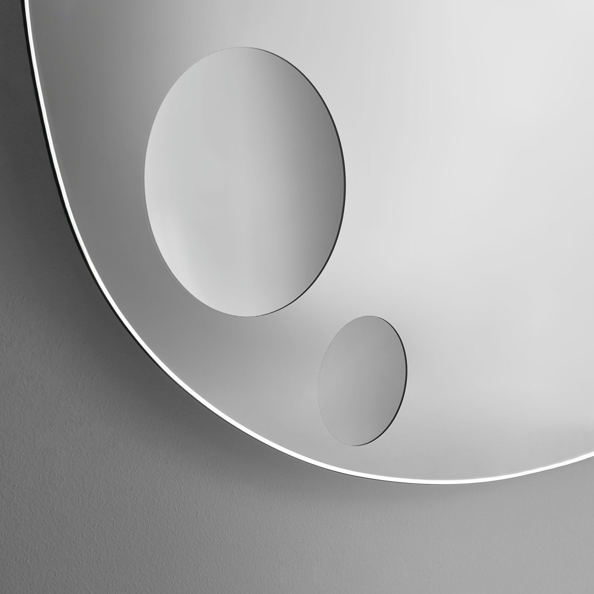 Сверхлегкое зеркало диаметром 5 мм доступно в круглой или овальной форме. Зеркало обладает магнитным эффектом, создавая сюрреалистические эффекты благодаря трем увеличительным отверстиям, расположенным на плоской поверхности, причем каждое отверстие имеет разный диаметр и разную степень увеличения. Зеркало имеет изящную скошенную кромку, которая подчеркивает красоту этого предмета.