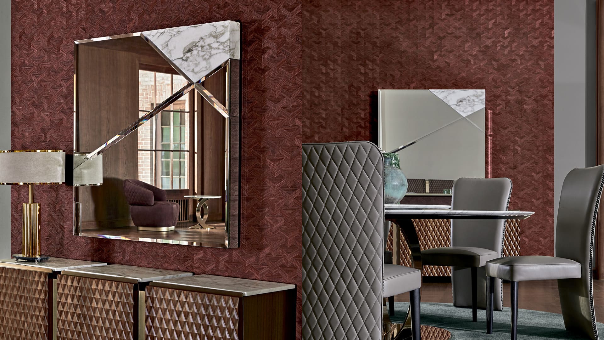Квадратное зеркало с мраморной отделкой Esther представляет собой шедевр точности в сочетании материалов.
