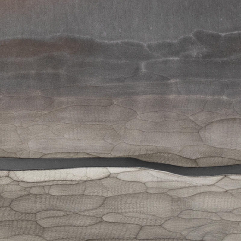 Деревянная конструкция обрамлена металлическим профилем с краями из матовой полированной латуни.