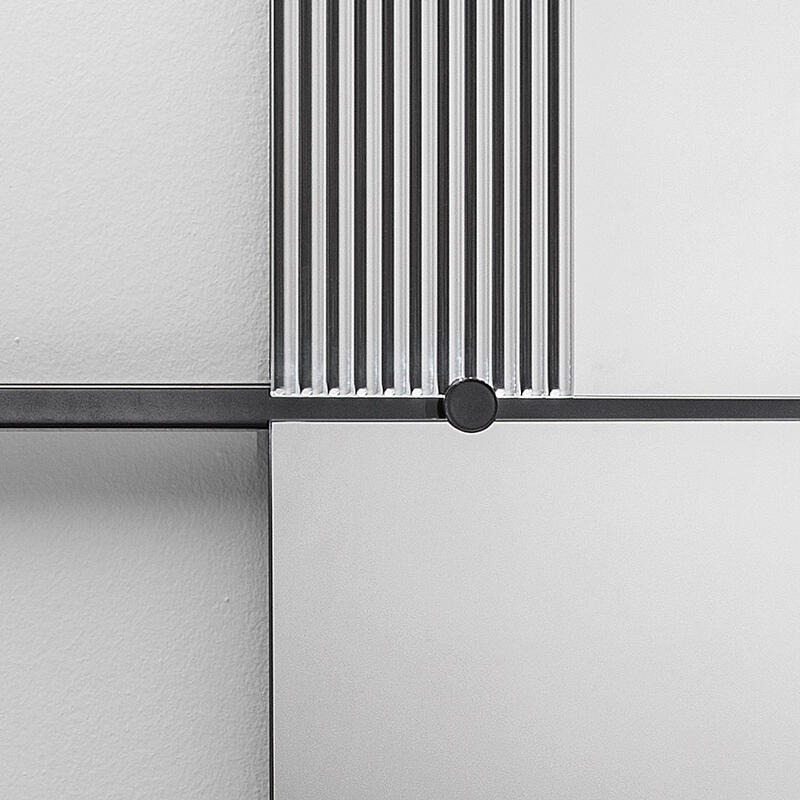 Квадратное зеркало, разработанное Жан-Мишелем Вильмоттом. Квадратная металлическая конструкция, покрытая матовым черно-серым лаком.
