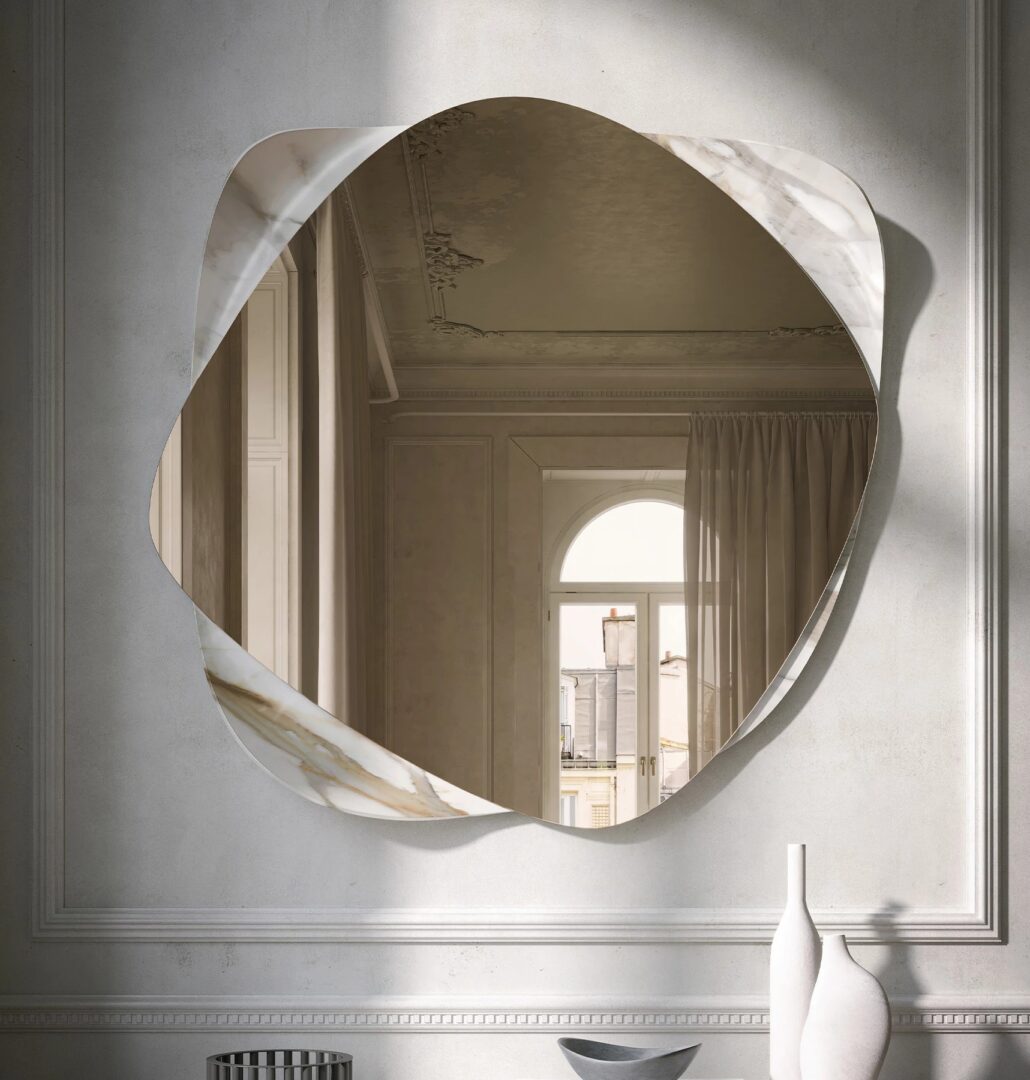 Galileo-это изогнутое зеркало с цифровой печатью и центральным зеркалом, которое благодаря своему особому дизайну может стать фокусом любой комнаты.