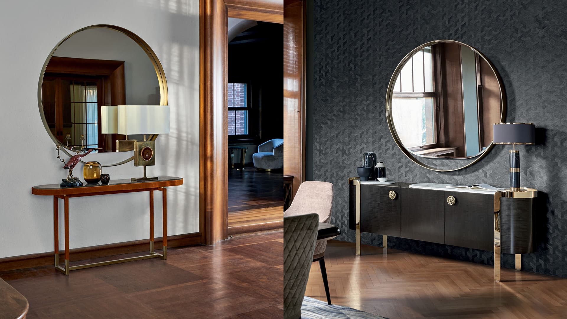 Круглое зеркало Gyselle в полированной металлической раме привнесет в гостиную нотку гламура в стиле ар-деко. Круглая форма и металлическая рама Gyselle делают это зеркало неотразимым.
