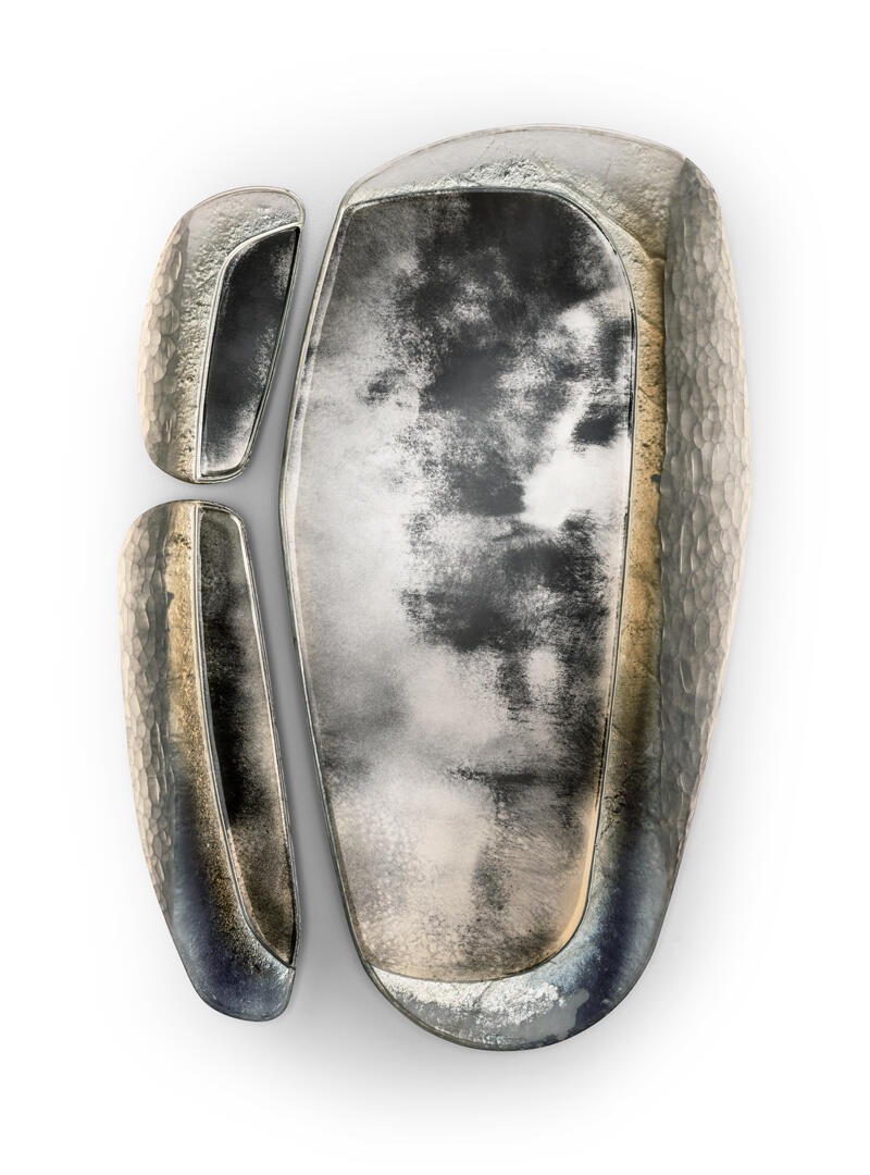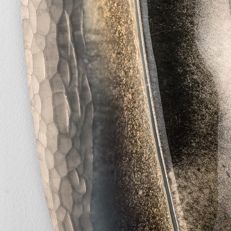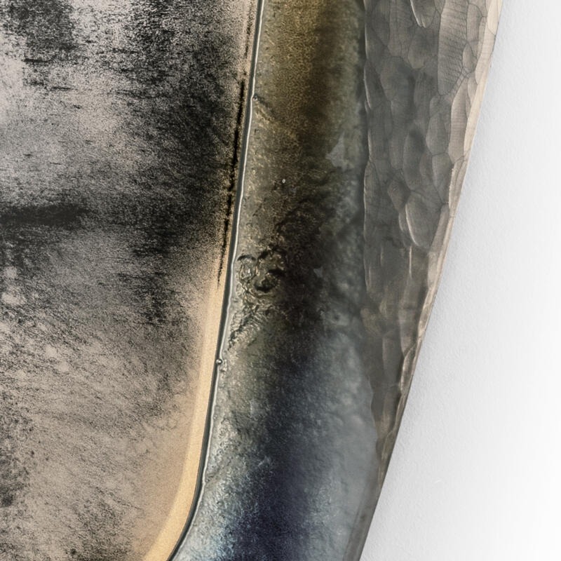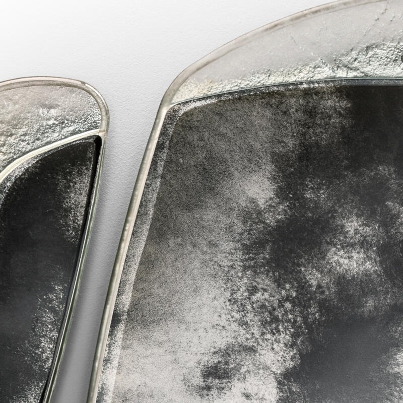 Конструкция из матового черного лакированного дерева. Стекло с обработанными краями, некоторые из которых скошены вручную, а на других нанесена ручная гравировка с покрытием Miage и посеребрением поверхности.