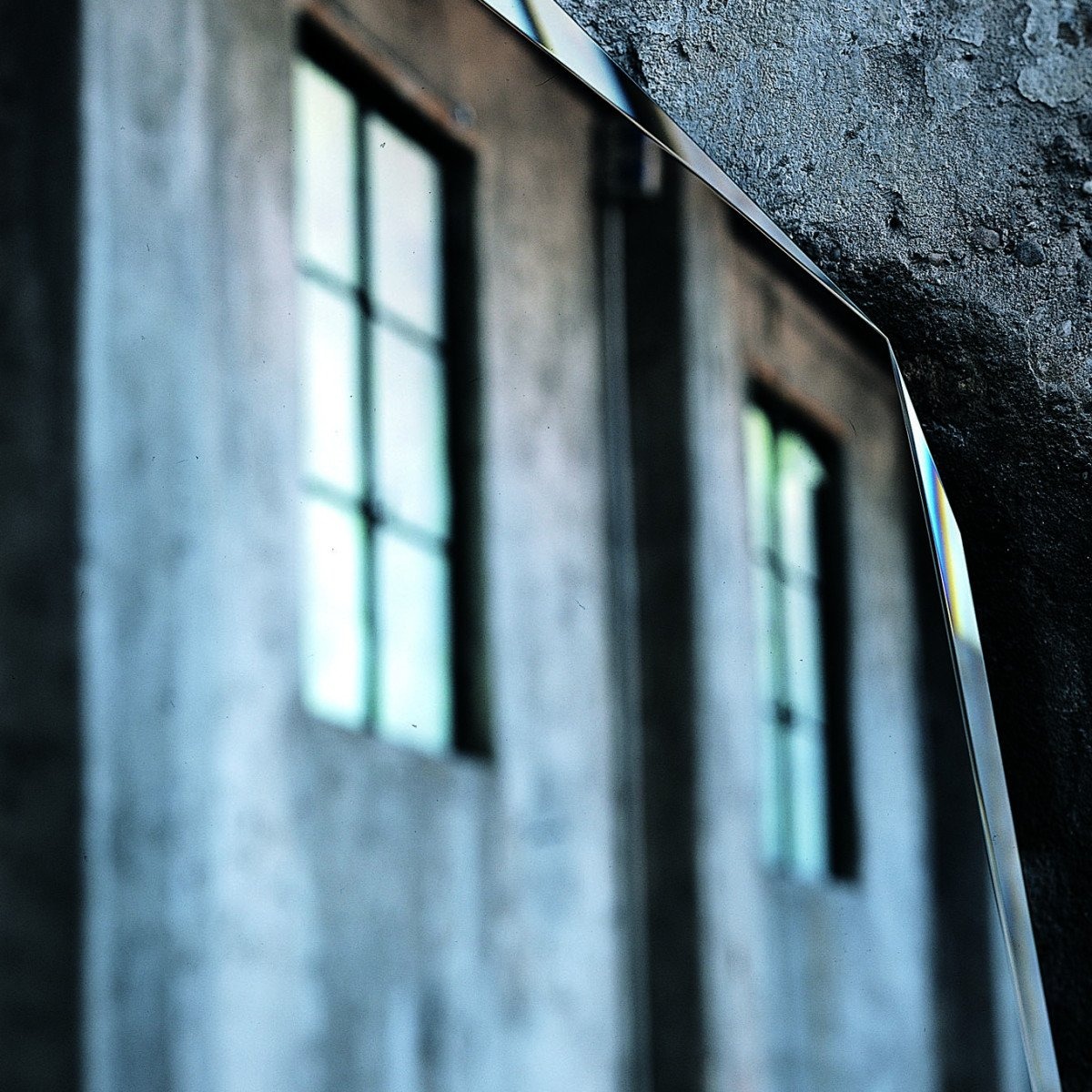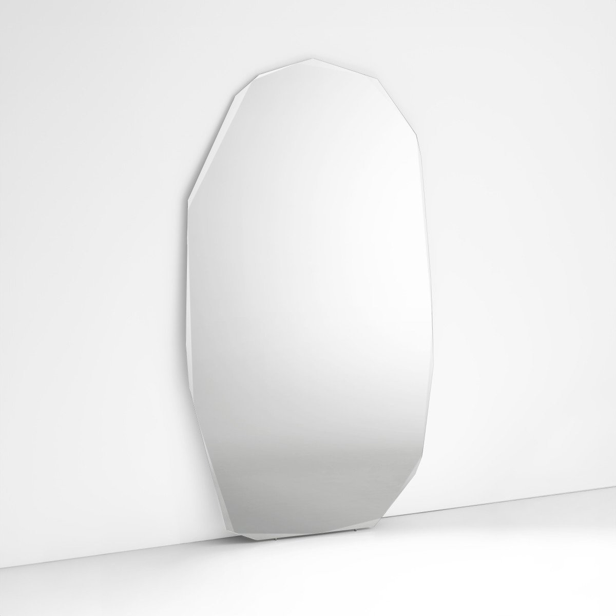 Стоячее зеркало неправильной формы с ограненным периметром и специальными фасками с переменной глубиной и наклоном.