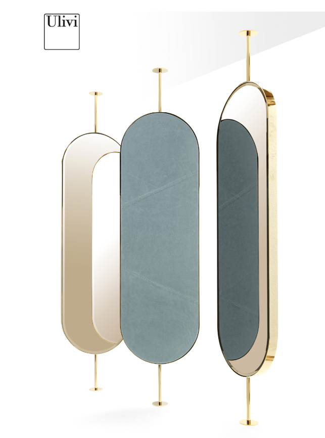 Коллекция зеркал доступна в различных размерах , с декоративными металлическими крючками для подвешивания и панелью спинки, обитой кожей.