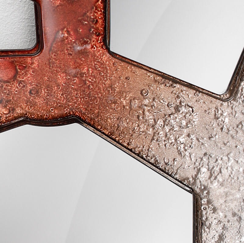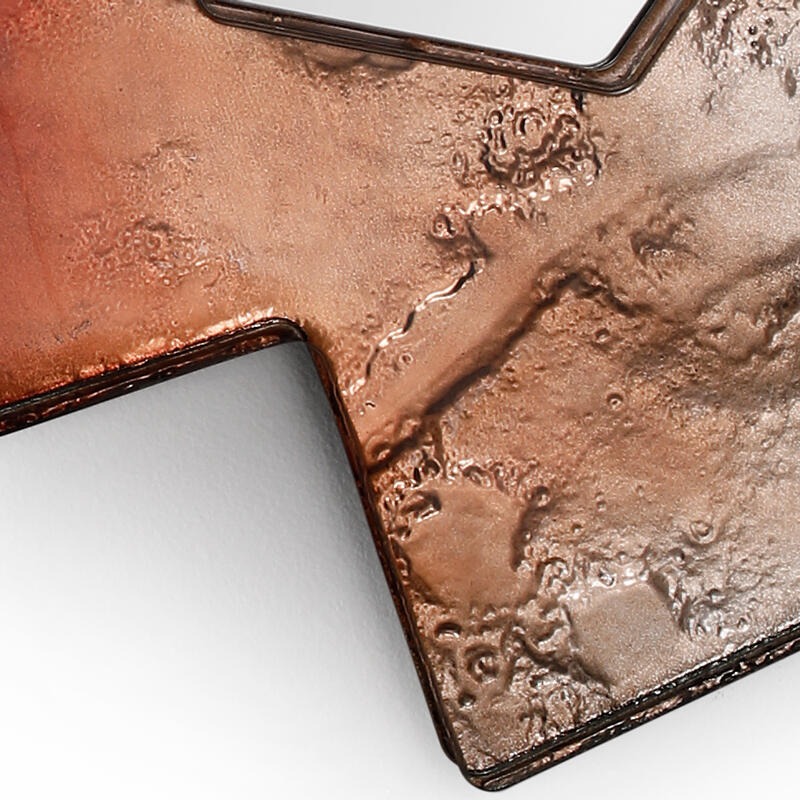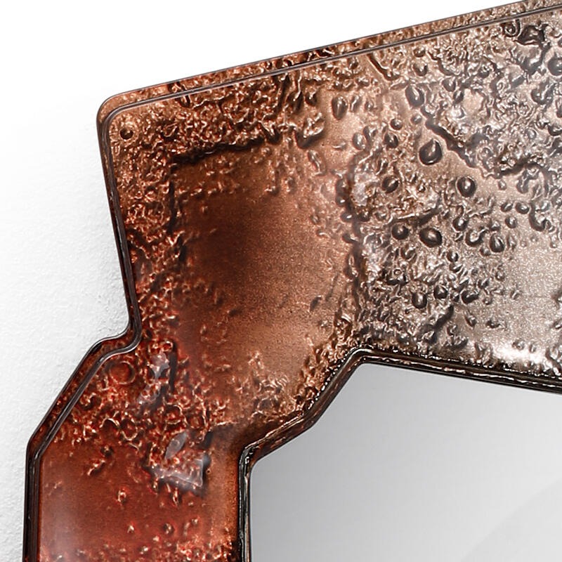 Двухслойная рамка из обожженного стекла с неровными краями, покрытая лаком от бронзового до прозрачного, все изделие посеребрено и имеет античный оттенок.