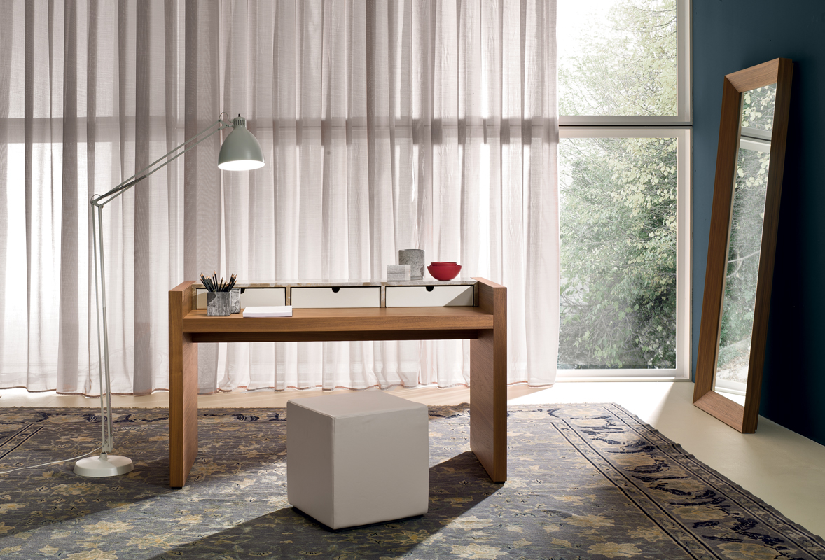 Эта коллекция, намеренно отличающаяся простым объемом и четкими линиями, реализованными с помощью изысканных материалов и изготовления, включает в себя ряд элементов мебели (низкий шкаф, письменный стол и зеркало) из обожженного черного орехового дерева с матовой отделкой, которые придают богатство и особую элегантность как визуально, так и на ощупь.