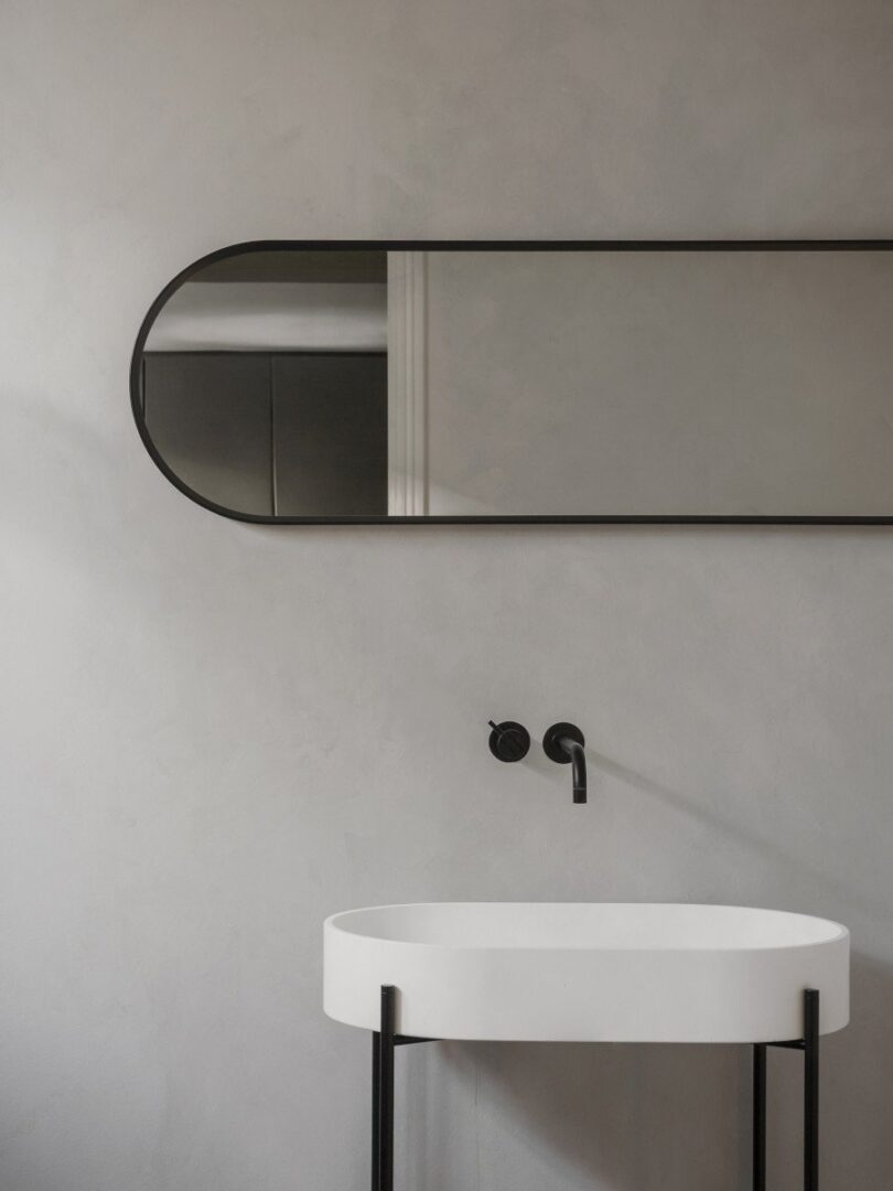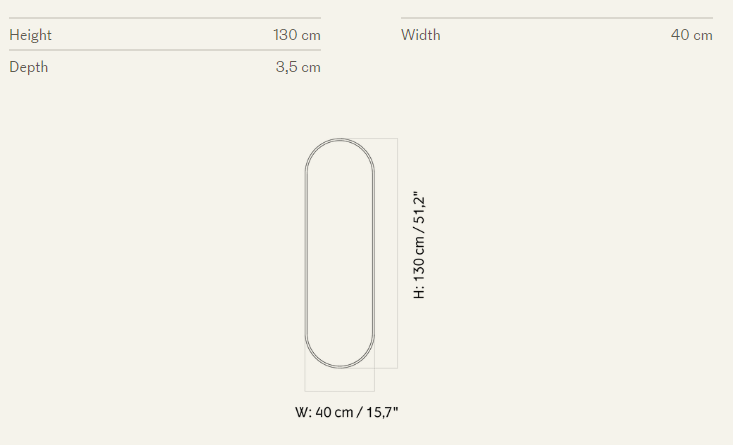 Овальное зеркало, вдохновленное винтажными зеркалами для гардеробных, отличается простотой и обтекаемой формой. Это практичное и универсальное зеркало, которое можно использовать в ванной комнате, прихожей или гардеробной. Овальное зеркало является частью коллекции Norm Architects, каждое зеркало выполнено в металлической раме с порошковым покрытием и слегка закругленными углами.
