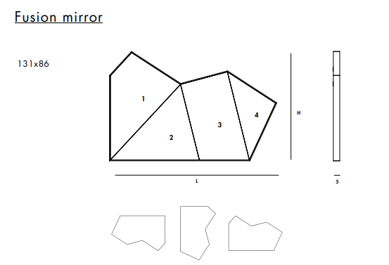 Зеркало, которое идеально и визуально складывается, как бумага, позволяя создавать различные фигуры и формы через геометрию отражений с его различными поверхностями цвета золота, серебра, бронзы, розы и дыма.