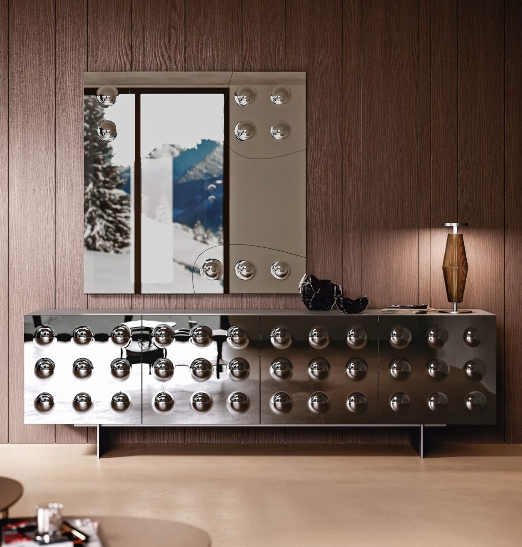 Разрушительный дизайн зеркала Rock идеально подходит для современных эстетических помещений благодаря особой обработке в зеркальной моноласте с девятью рельефными пузырьками.
