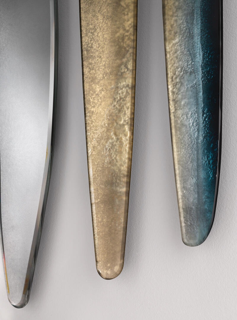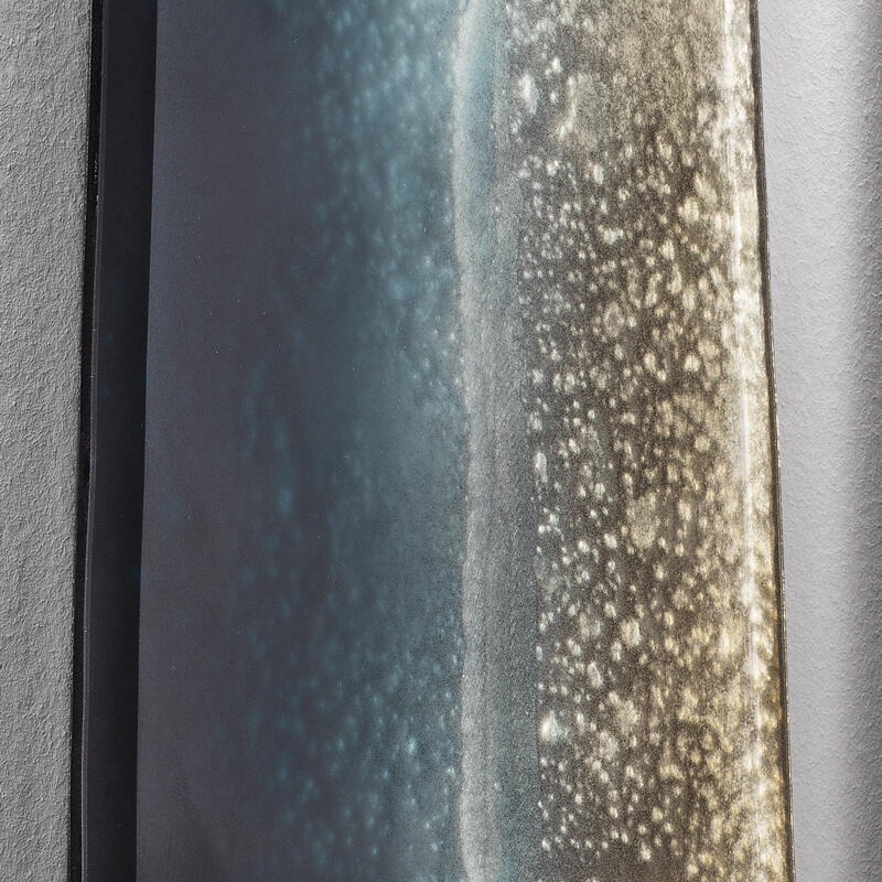 Конструкция выполнена из матового черного лакированного дерева. Очень прозрачное обожженное стекло, вручную декорированное краской Etna. Поверхность покрыта матовым лаком.