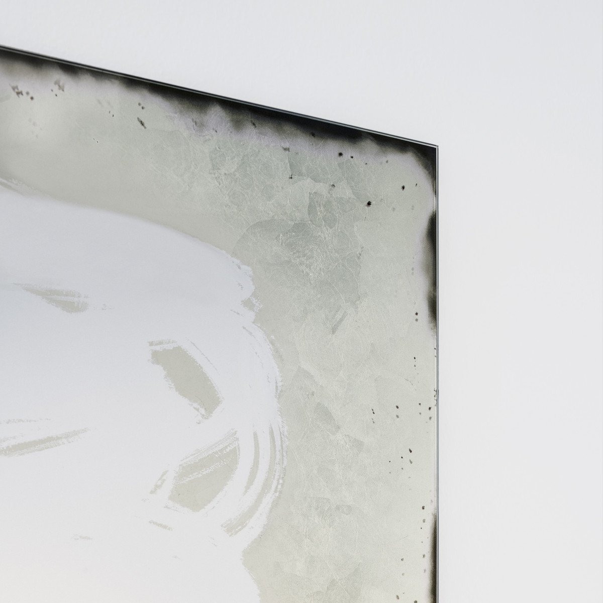 Зеркало изготовлено из сверхлегкого стекла толщиной 5 мм, отличающегося художественным и ироничным оформлением. Зеркальная поверхность, по сути, выглядит так, как если бы она была нарисована кистью от руки на нейтральном черном фоне или покрыта драгоценным листовым серебром под старину. Зеркало можно повесить во всех четырех положениях.
