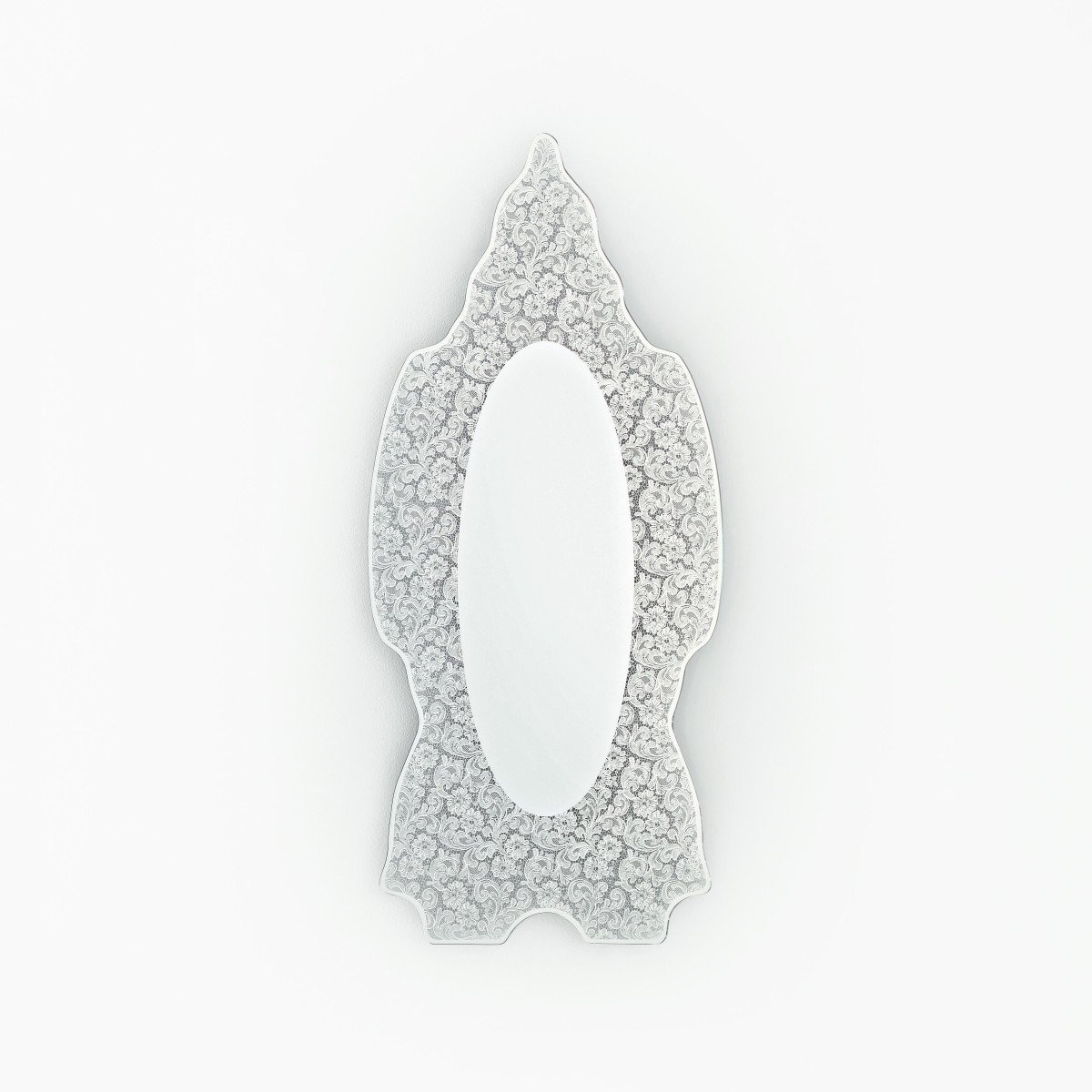 Повторный показ исторического зеркала, созданного Чинцией Руджери для Glas Italia в 1989 году. Spizzo — это фигурное зеркало, доступное в двух размерах и украшенное изящной вставкой из зеркального кружева.