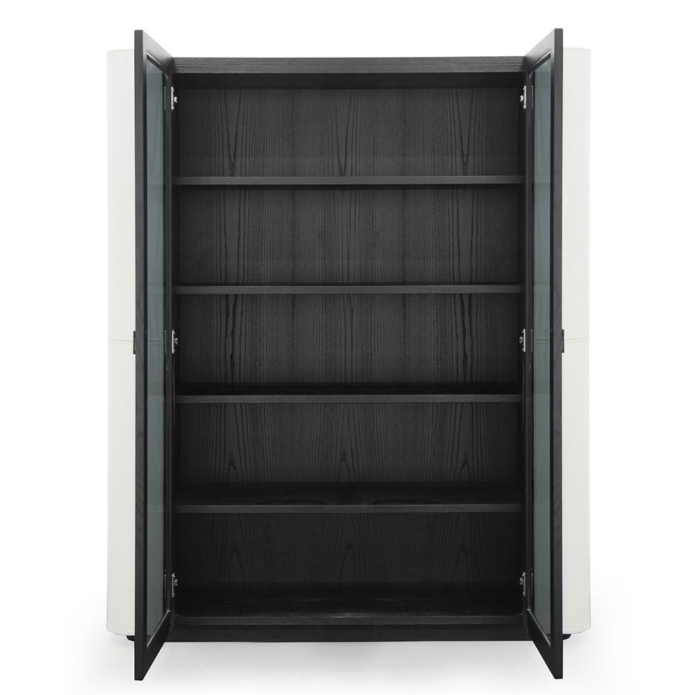 Книжный шкаф DOWNTOWN от итальянской фабрики FORMITALIA — элегантное решение для хранения книг и декора. Модель с прозрачными стеклянными дверями в оттенке фюме и рамой из натурального ясеня с черной матовой отделкой. Боковые панели выполнены из кожи Daino цвета устрица с аккуратной строчкой тон в тон.
