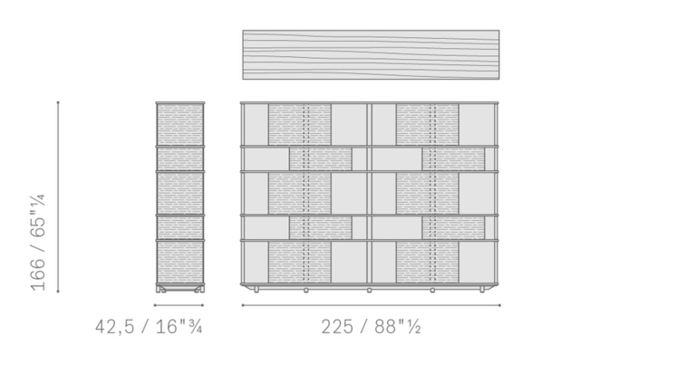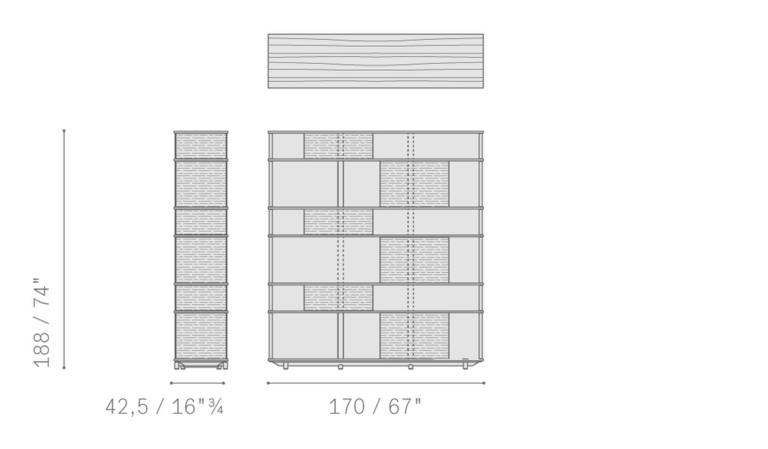 Скользящие панели из полупрозрачной технической ткани Techno-fabric в светлых и темных оттенках создают динамичные визуальные эффекты, позволяя вам изменять восприятие пространства. Структура изделий продумана до мелочей: панели движутся по невидимым горизонтальным дорожкам, открывая новые грани вашего интерьера. Этот книжный шкаф идеально подойдет для современных, стильных домов, где важна каждая деталь.