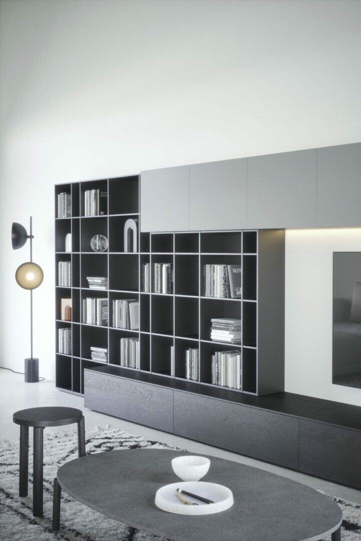 Книжный шкаф WALL12 от итальянской фабрики NOVAMOBILI — элегантное решение для современных интерьеров. Тонкие линии, продуманное сочетание твердых элементов и пустот создают эффект легкости и порядка. Идеально подходит для хранения книг и декора, сохраняя стиль и функциональность.