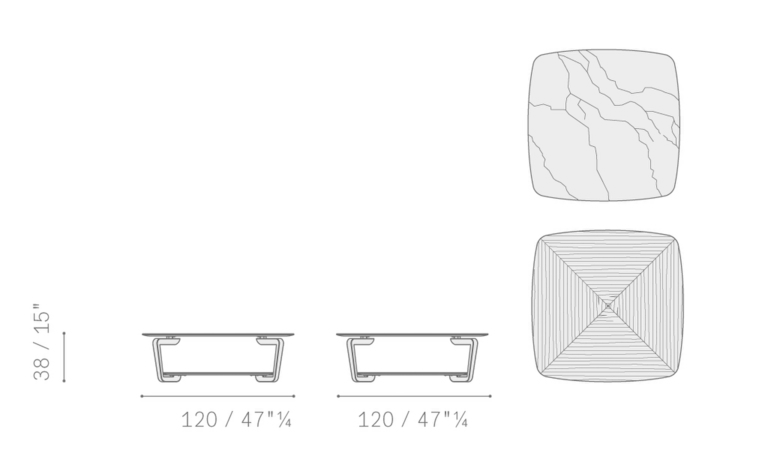 Кофейный столик FIORILE имеет утончённый и современный вид благодаря характерному треугольному поперечному сечению основания, выполненного из твердого ясеня. Вы можете выбрать отделку в классическом моке или элегантном венге, что позволит гармонично вписать изделие в любой интерьер. Столешница может быть выполнена из различных материалов, включая: