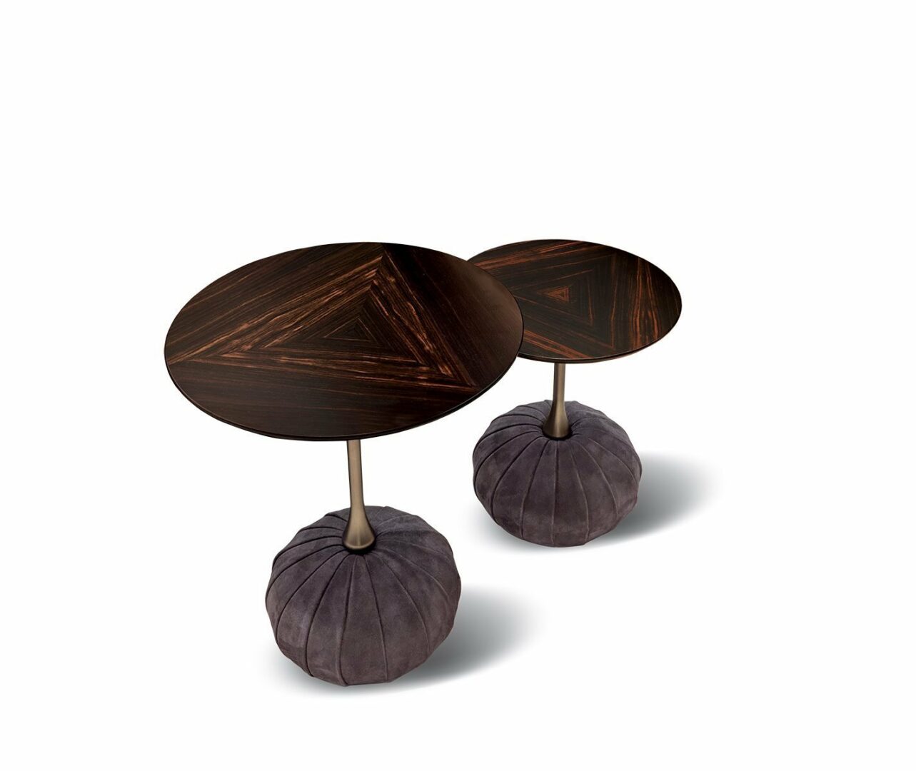 Столешницы из благородных материалов, таких как литая латунь и мрамор, подчеркивают эксклюзивность изделия. Обивка основания, выполненная из кожи или ткани, предлагает индивидуальные решения, включая отделку капитоне с кристаллами Swarovski. Этот столик станет изюминкой вашего пространства, создавая атмосферу уюта и респектабельности.