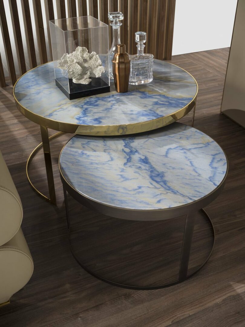 Столешницы кофейного столика BIS выполнены из высококачественных материалов, включая дымчатое зеркало и роскошные мраморы, такие как Portoro, Sahara Noir и многие другие. Каждый элемент тщательно отобран, чтобы обеспечить долговечность и эстетическую привлекательность. Такой выбор материалов гарантирует, что ваш столик будет не только красив, но и практичен в использовании.