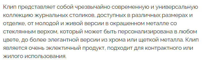 Кофейный столик CLIP — это синтез современной эстетики и классического совершенства. Его лаконичные линии и продуманные пропорции создают ощущение легкости, а оригинальная конструкция притягивает взгляды. Дизайнеры фабрики Giulio Marelli вдохновлялись итальянскими традициями, сочетая их с актуальными трендами. Столик идеально впишется как в минималистичные, так и в насыщенные интерьеры, добавляя им утонченности и респектабельности.