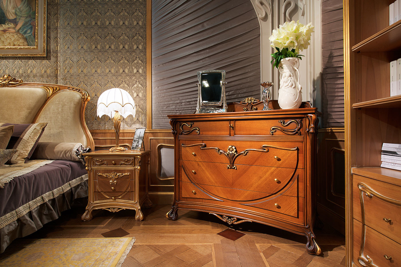 Только редкие породы дерева, отобранные вручную, становятся основой для комода 2052CC. Дуб, орех или вишня с выразительной текстурой подчеркивают глубину цвета, а декоративные элементы могут быть дополнены: