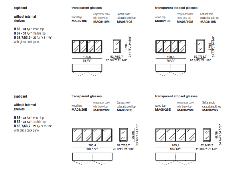 Доступен в четырех- или пятидверной конфигурации с возможностью выбора задней панели (дерево, стекло). Двери открываются на 95° благодаря запатентованной петле, обеспечивая удобный доступ. Итальянское качество и внимание к деталям делают этот комод стильным и функциональным элементом интерьера.