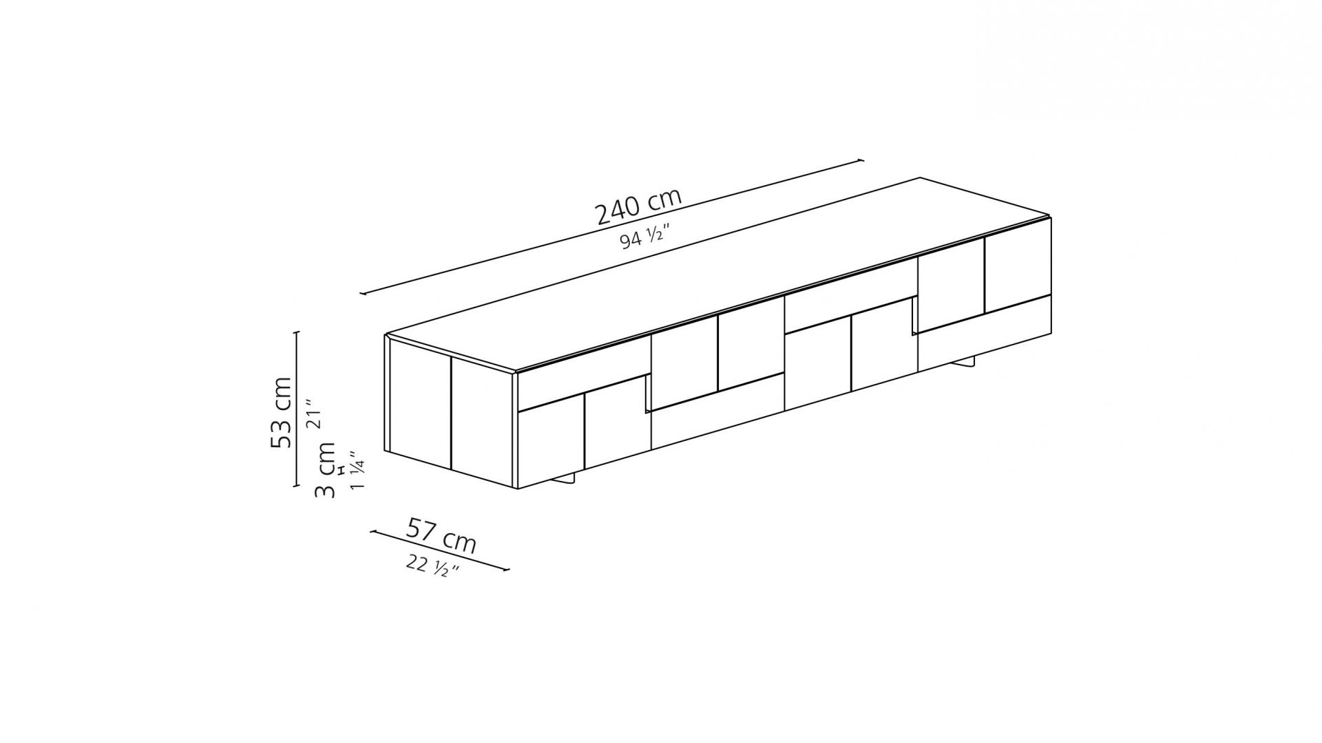 Верхняя поверхность может быть выполнена из драгоценного мрамора или дерева, а внутреннее пространство включает полку из закаленного стекла бронзового цвета и практичный ящик. Комод доступен в двух вариантах высоты, что позволяет выбрать оптимальный вариант для вашего пространства.